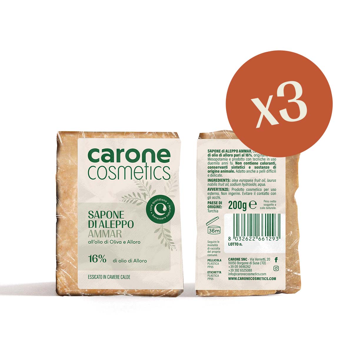 200 g - 16% di olio di alloro - 3 Pezzi